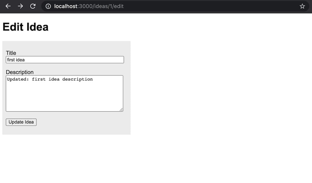 Open url https://localhost:3000/ideas/1/edit in your browser and see what happens.